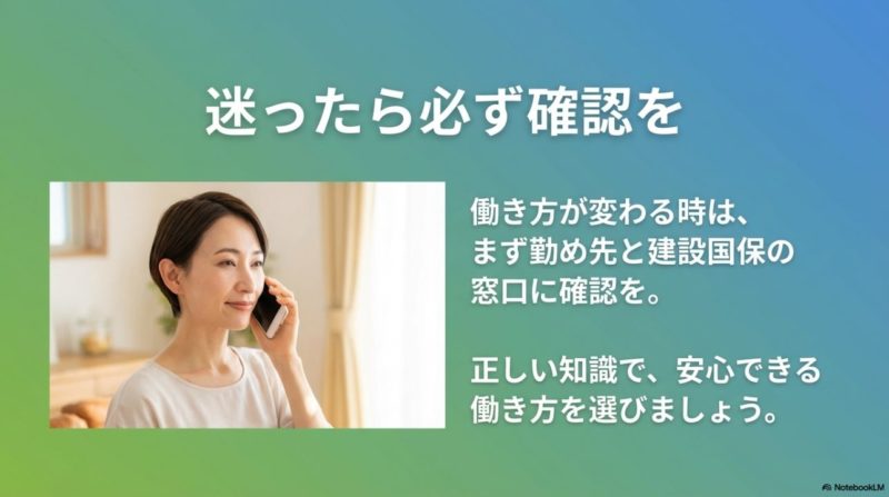 数字や条件はあくまで一般的な目安で、実際の扱いは加入先の建設国保組合によって差があります。 正確な情報は公式サイトをご確認ください。 最終的な判断は、加入先の支部や市区町村窓口、必要に応じて社会保険労務士など専門家にご相談ください。 制度は細かいですが、ひとつずつ整理すれば必要以上に怖がる必要はありません。 まずは今の働き方と収入の見込みを確認し、次にどの手続きが必要かを支部へ聞く、この順番で進めるのがいちばん現実的です。