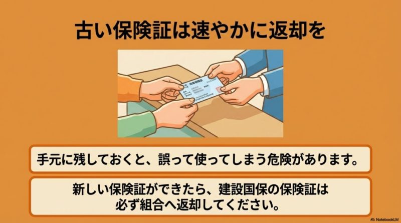 ここでありがちなのが、「会社で保険証が出たから、もう全部終わった」と思ってしまうことです。 でも実際には、建設国保側の資格喪失手続きを別でしないと、前の資格が残ったままになることがあります。 そのままにすると、保険料の請求が続いたり、後から資格がさかのぼって消されたりするリスクがあります。 就職が決まった時点で、新しい保険の取得日を確認し、その日付を基準に建設国保の支部へ連絡するのが基本です。