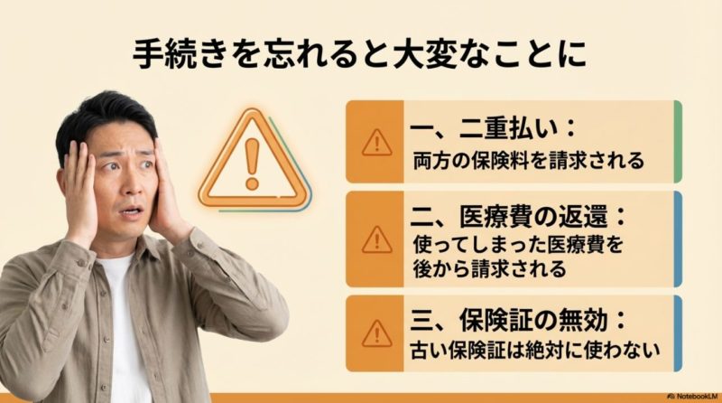 早めに届け出ておくと、保険料の重複請求や書類不足のトラブルを避けやすくなります。 あとでまとめて直すより、発生都度で処理したほうが圧倒的にラクですよ。 あなたの手間だけでなく、医療機関受診時の資格トラブルも起こしにくくなります。