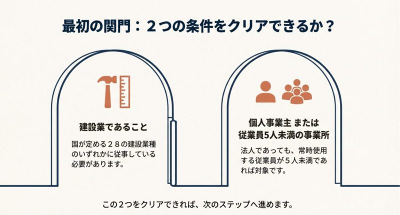 - 建設業の一人親方や、従業員5人未満の個人事業主である
