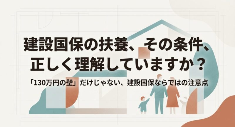 この記事では、建設国保の扶養条件を、年収の壁・同居別居・収入計算・手続きの注意点までまとめて整理します。 最後に、あなたのケースで「何を確認すべきか」まで落とし込みますね。