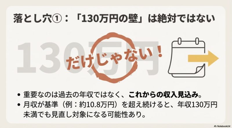 - 130万円の壁は目安。手取りではなく総支給ベースで考える