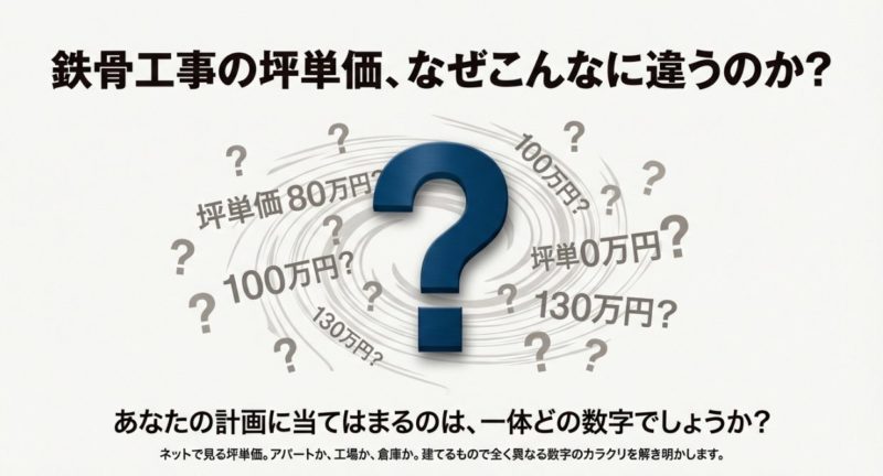 鉄骨工事の坪単価を正しくつかむには、次のようなステップで考えてみてください。